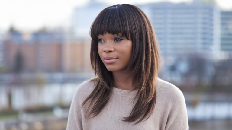 The good news? This style actually becomes easier to manage over time as you develop your routine. The layers mean you don’t need perfectly straight or perfectly curled hair – the natural texture and movement hide imperfections. Many women find they can reduce their heat styling once they have properly cut layers, as the hair naturally falls into place with minimal effort. Regular conditioning treatments keep the ends healthy, ensuring your layers look intentional rather than damaged, while dry shampoo becomes your best friend for maintaining volume and freshness in your bangs between washes.