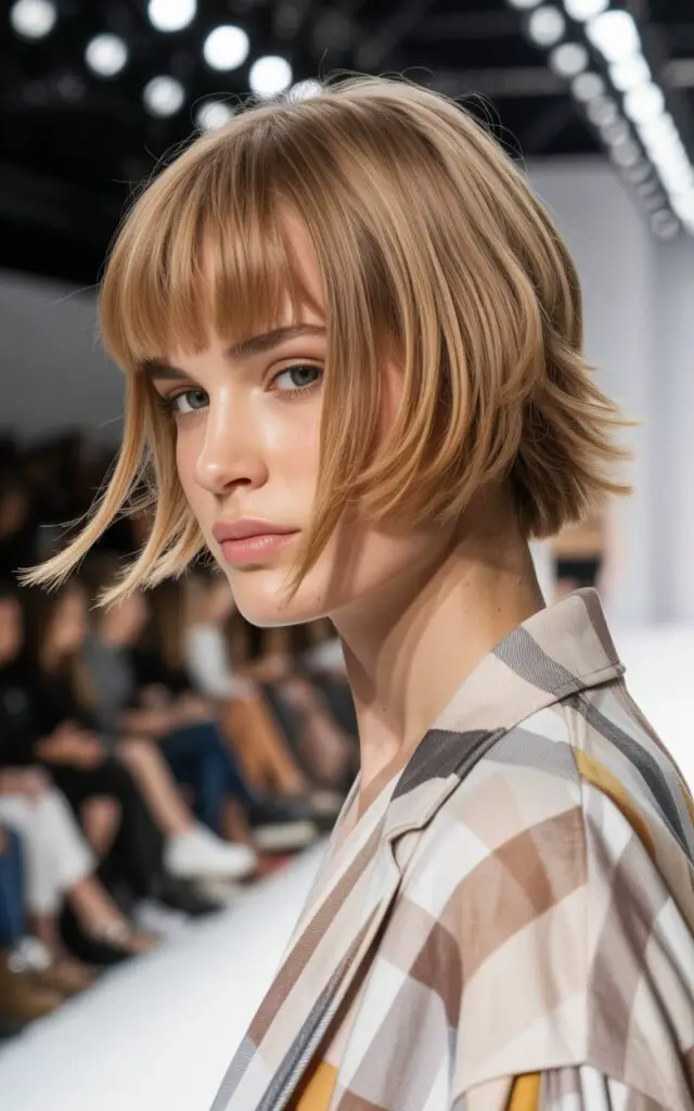 This works especially well if you find traditional blunt cuts too heavy or rigid. You get the volume benefits without that solid wall of hair. The wispy ends soften your overall look and add a feminine touch.