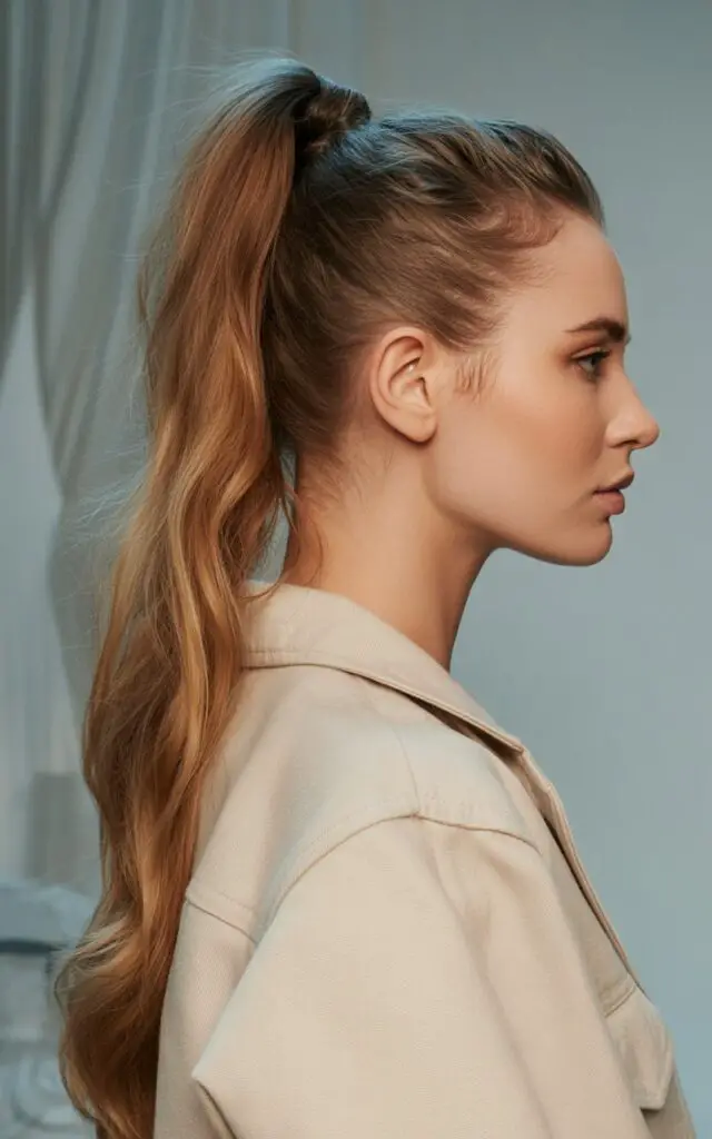 Secure your ponytail at your desired height, making sure the top remains perfectly smooth. The elastic should be tight enough to hold firmly but not so tight that it creates a dent in your hair. Now comes the fun part – creating volume in the ponytail itself.